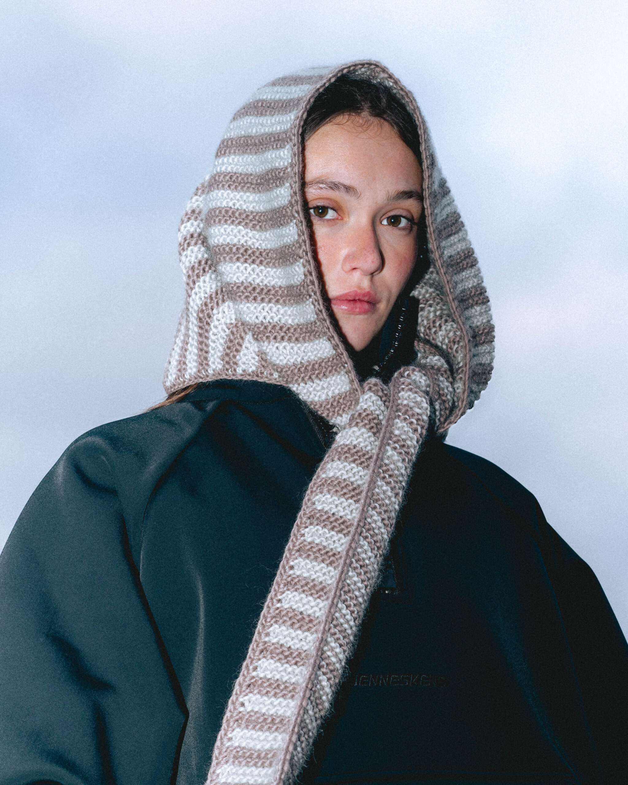 Knitted scarf from the Clara Knitwear x jenneskens collaboration. Handmade in the UK with Bluefaced Kerry Hill wool.