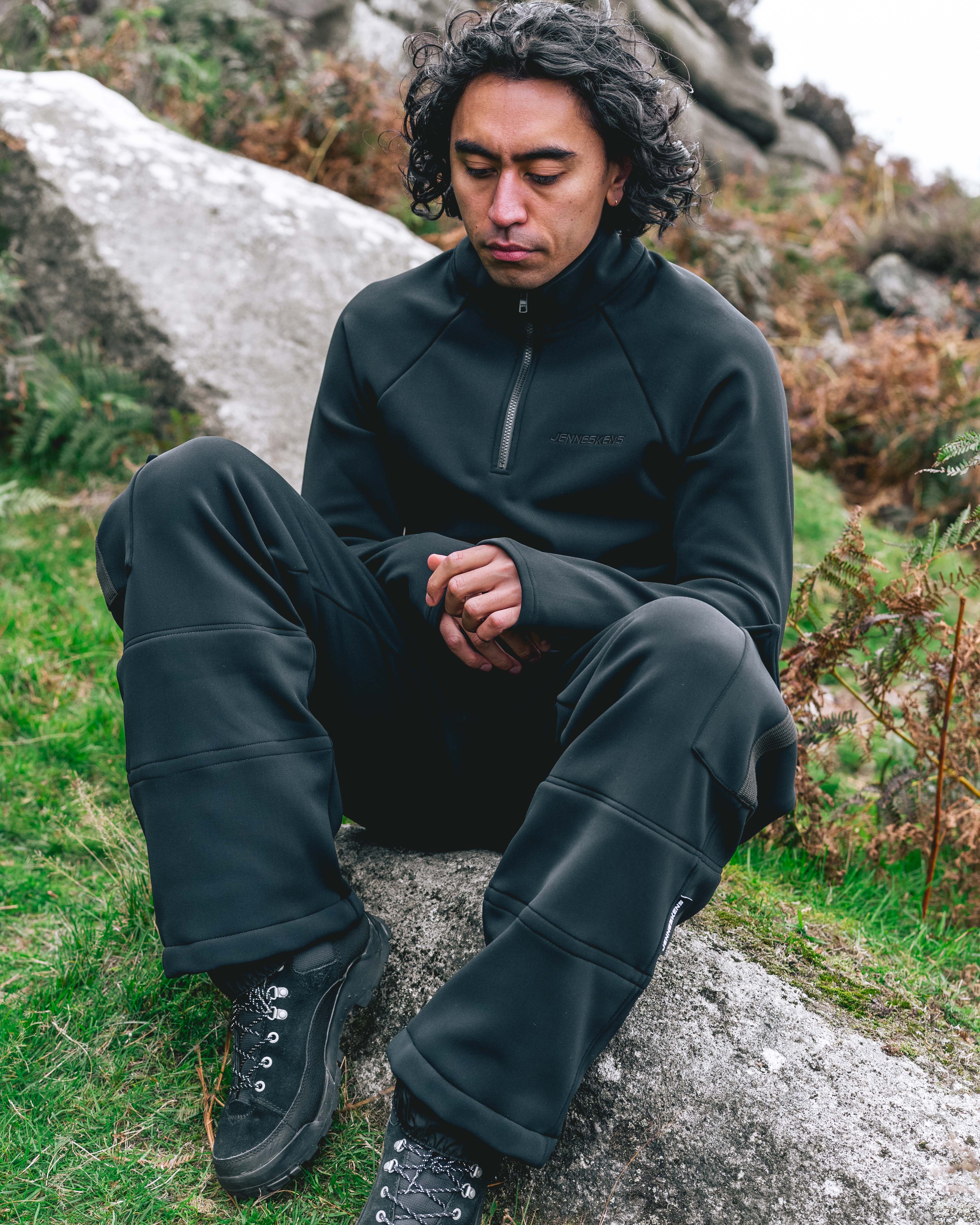 Versatile longsleeve in deep black made with Schoeller®-e3 Protection softshell fabric offering advanced breathability and temperature regulation, making it ideal for almost all weather conditions.