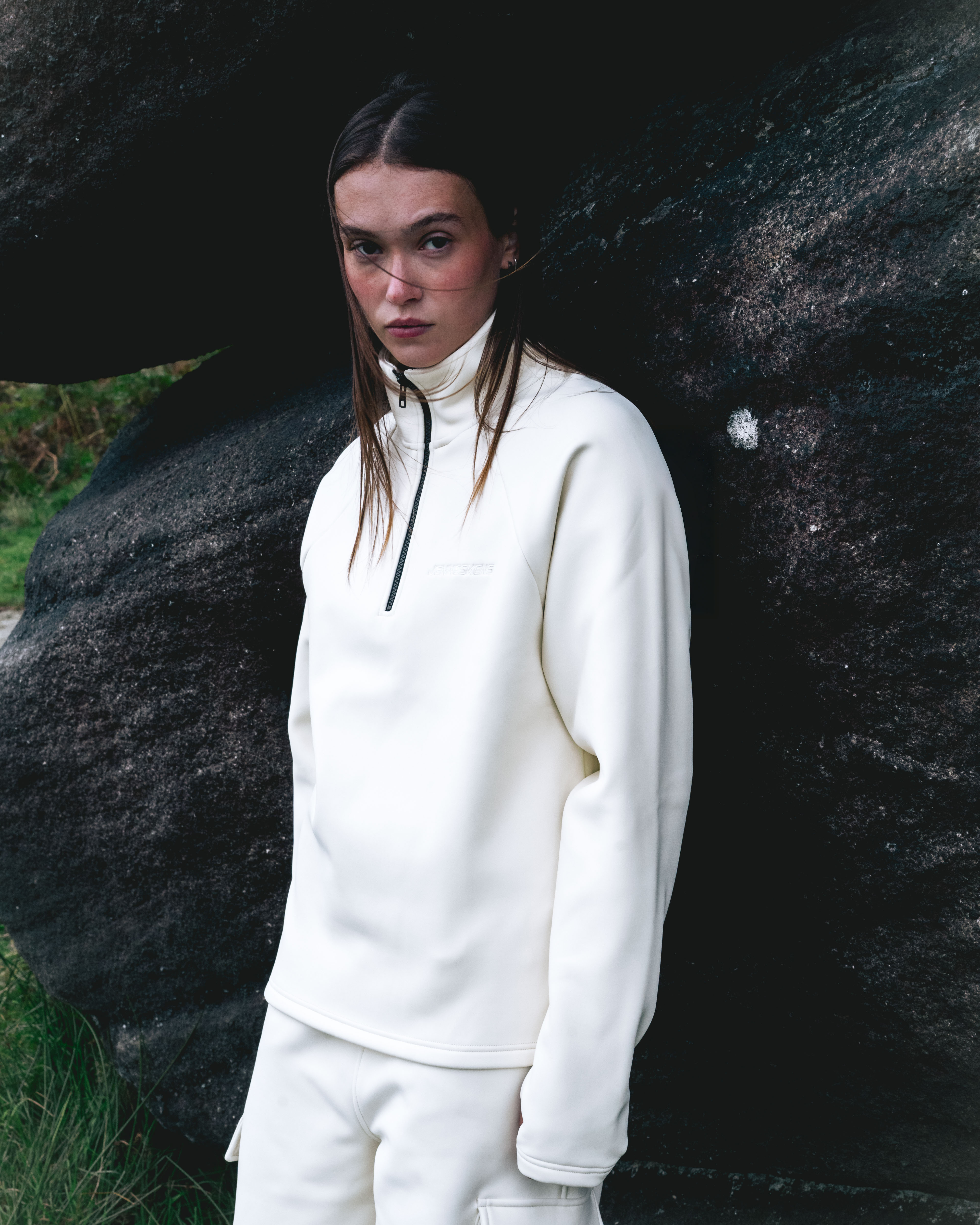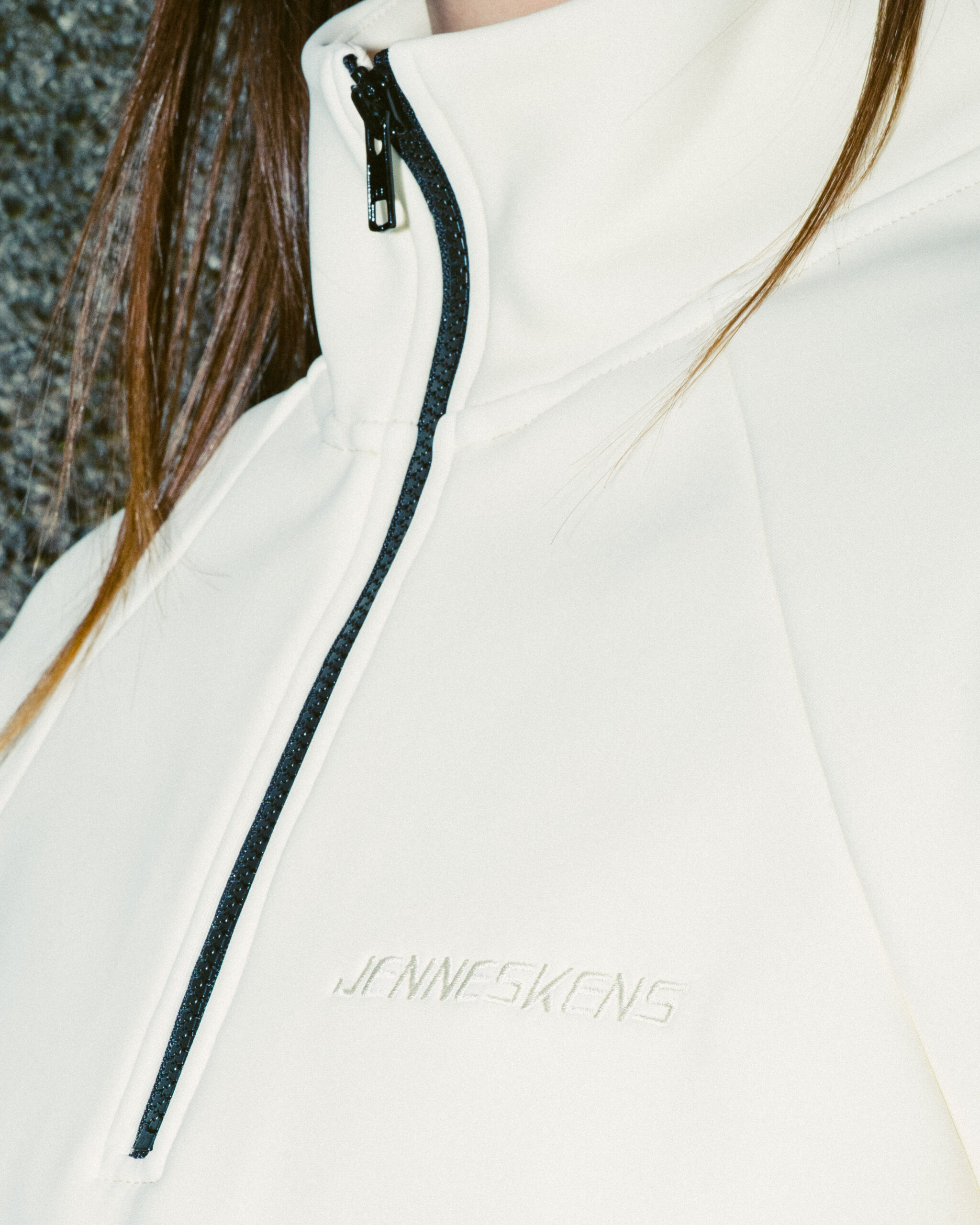 Versatile longsleeve in off white made with Schoeller®-e3 Protection softshell fabric offering advanced breathability and temperature regulation, making it ideal for almost all weather conditions.